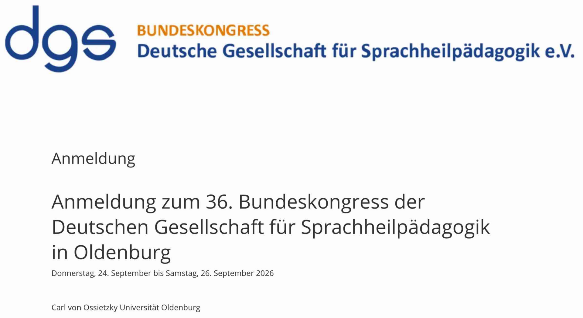 Vom 24. bis zum 26. September 2026 wird der 36. dgs-Bundeskongress an der Carl von Ossietsky Universität in Oldenburg stattfinden.